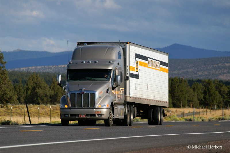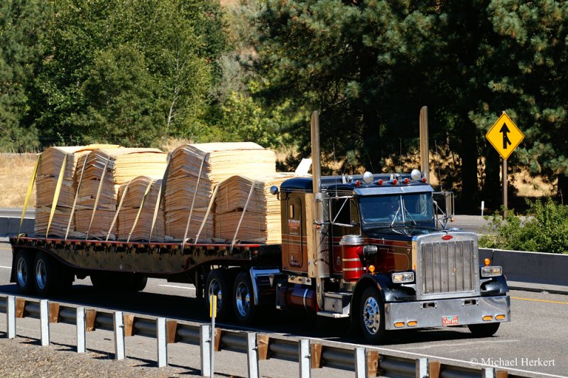 Peterbilt 387 auf dem Hwy. 20 in der High Desert östlich von Bend, Orgegon. August 2008