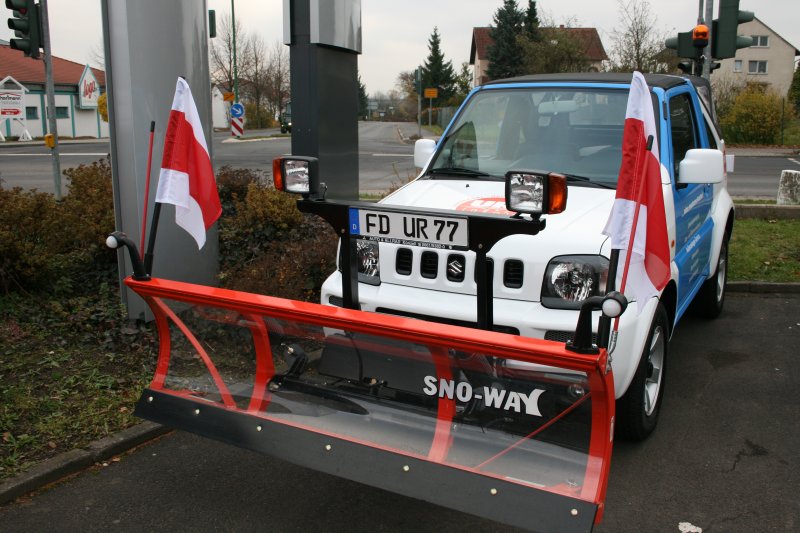 Suzuki Jimny, von "Universal-Reinigung", mit Räumschild und Salzstreuer steht bereit für den Winterdienst. Gesehen am 25.11.2008 in Fulda Konrad Neumann