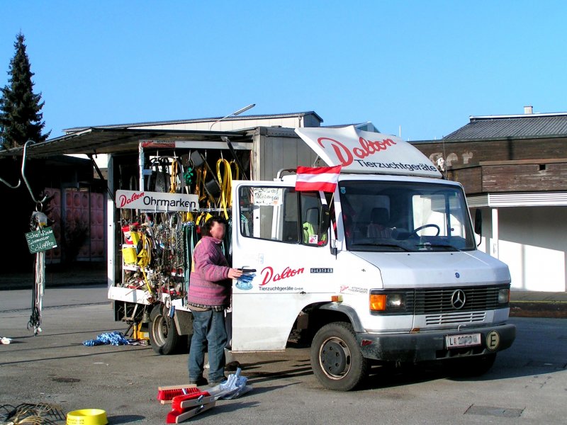 MB 609D dient als fahrender Verkaufstand für Tierzuchtgeräte und ist anlässlich des Großviehmarktes am Messegelände in Ried i.I. zugegen; 090113 JohannJ