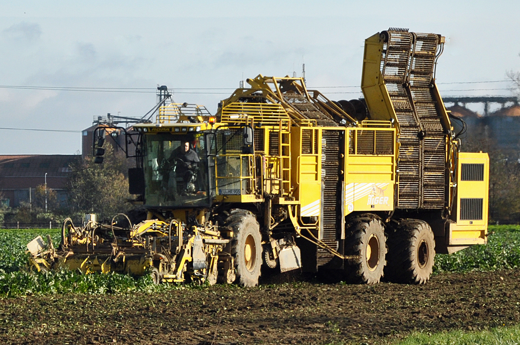 Zuckerrübenvollernter: euro-Tiger V8 4a; 444kW; Bj.2013; Fabr.ROPA; erhält nach getaner Arbeit eine Abschmiereinheit; (leider konnte ich dieses Gefährt nicht mehr im Einsatz ablichten) 131019 JohannJ