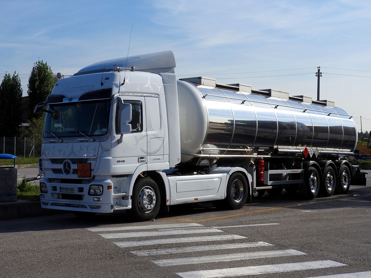 Mercedes Actros Streamspace mit Benzintank Sattelauflieger KLAESER im Hintergrund ein Actros MP3 Solozugmaschine abgestellt in Herten 04,07,2015 M.Schmidt