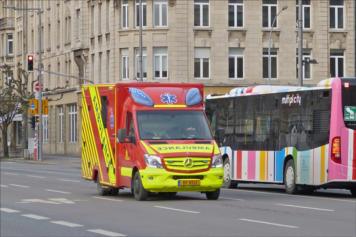 . Mercedes Benz Krankenwagen gesehen in Luxemburg. Januar 16