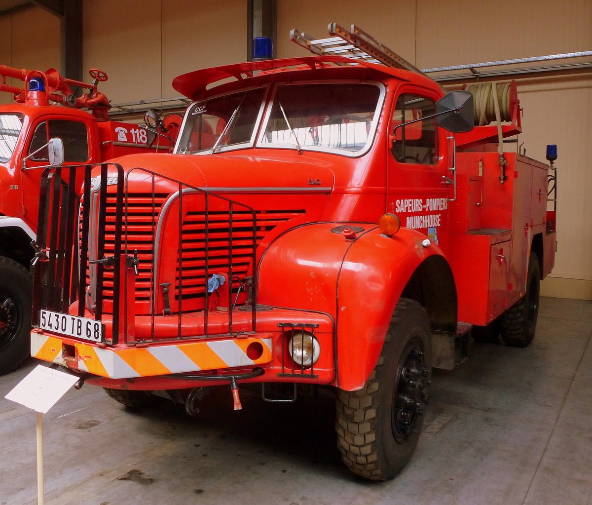 Saviem, Feuerwehr von 1964, mit 3500Liter Löschmitteltank, war im Dienst der Stadt Mülhausen (Mulhouse), Feuerwehrmuseum Vieux-Ferrette, Mai 2016 rainer ullrich