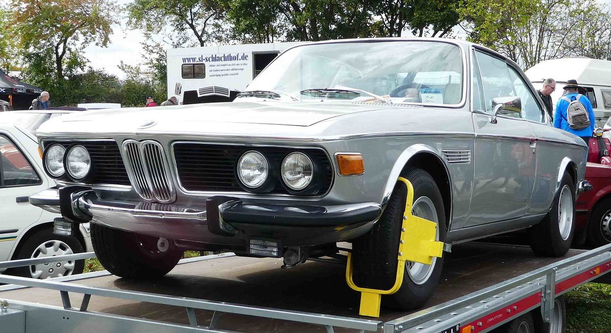 BMW E9 3.0 CSL. 1971 - 1972. 1971 entstanden die ersten 3.0 CSL-Coupes in Zusammenarbeit mit Alpina/Buchloe im Allgäu. Es waren Homologationsmodelle für den Tourenwagensport. Als Basis diente der E9 3.0 CS. Der CSL (Coupe Sport Leichtbau) erhielt keine motortechnische Leistungssteigerung, sondern wurde durch Gewichtsersparnis auf ein Leergewicht von 1165 kg "abgespeckt". Der abgelichtete Wagen ist der letzte gebaute 3.0 CSL mit Vergasermotor. Der