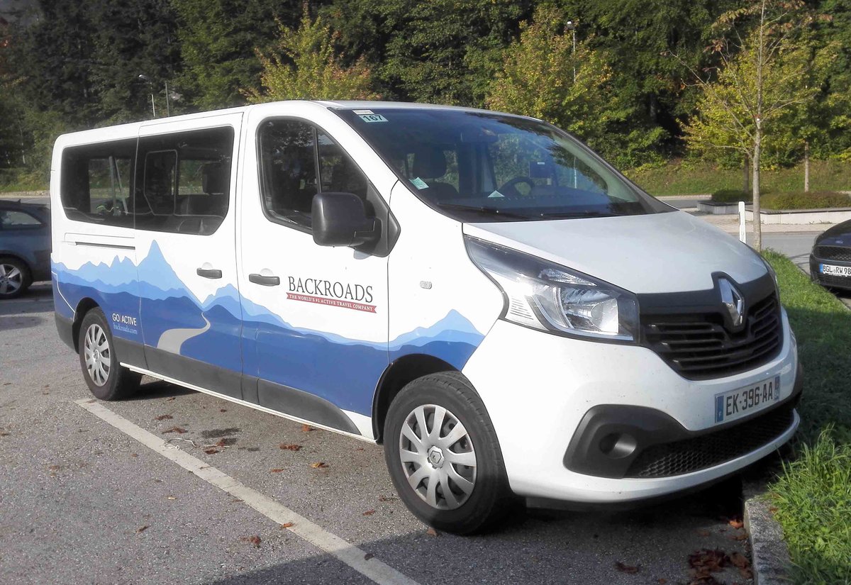 =Renault Trafic des Aktivurlaubveranstalters BACKROADS steht im Septemer 2018 in Königsee
