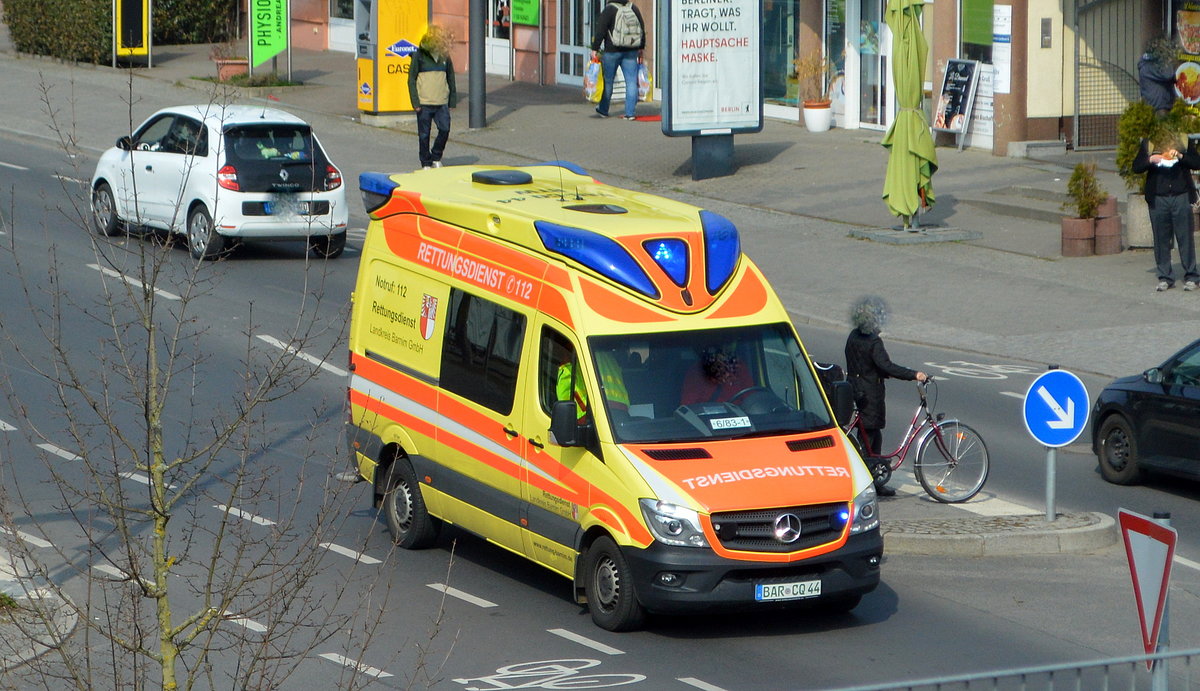 MB Sprinter RTW der Landkreis Barnim GmbH auf Einsatzfahrt am 25.03.21 Berlin Buch.