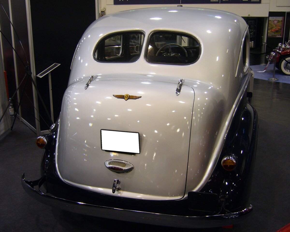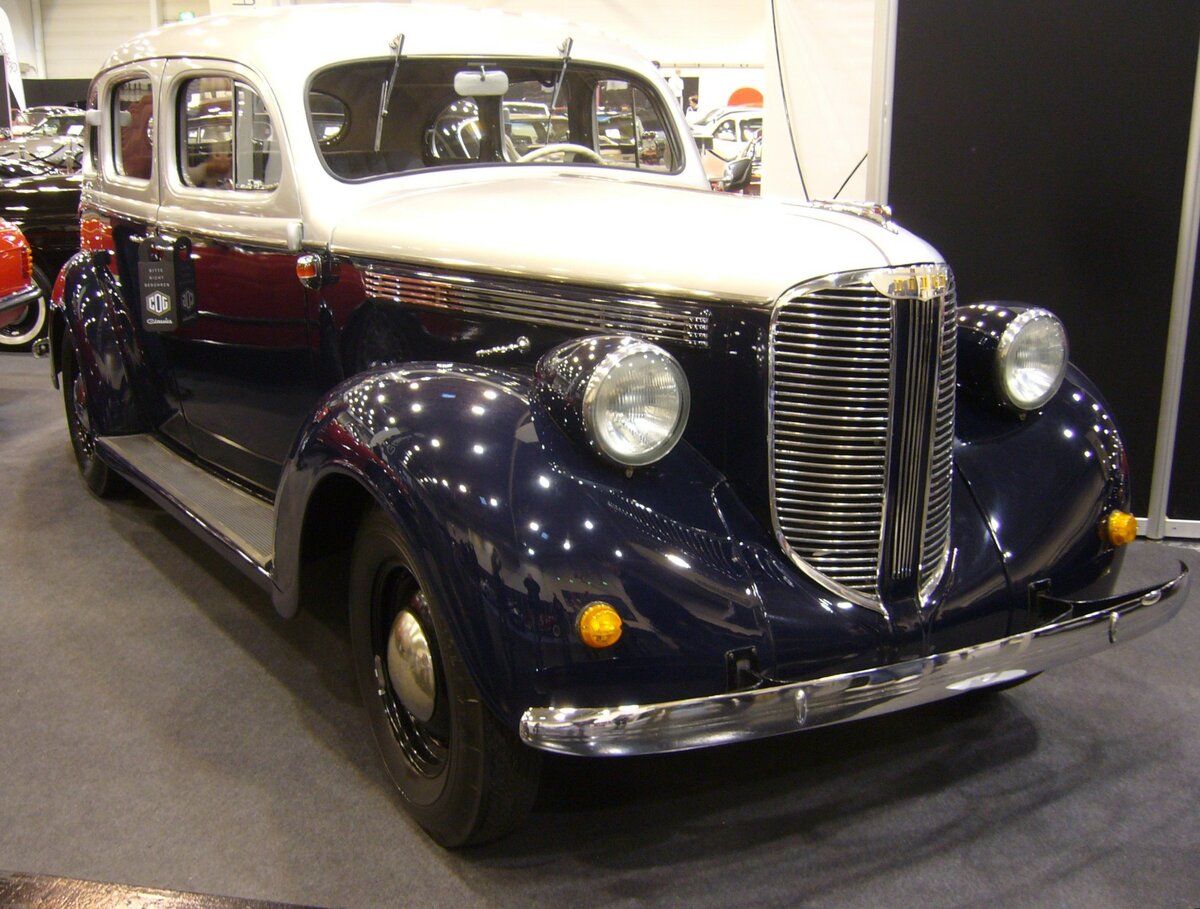 Dodge D8-Six Touring Sedan aus dem Modelljahr 1938. Dieser Dodge wurde 1938 nach Dänemark ausgeliefert. Dieses Modell verfügte Ende der 1930´er Jahre über solch extravaganten Extras wie eine Innenraumheizung, insgesamt vier Innenraumleuchten, einige Kleiderhaken und Kurbelfenster an allen vier Türen. Zudem waren bereits Ausstellfenster in den vorderen Türen verbaut. Im Jahr 1938 belegte Dodge den fünften Platz in der US-amerikanischen Zulassungsstatistik mit 288.841 Fahrzeugen. Der Sechszylinderreihenmotor dieser Limousine hat einen Hubraum von 3572 cm³ und leistet 87 PS. Essen Motorshow am 06.12.2023. Michael H.