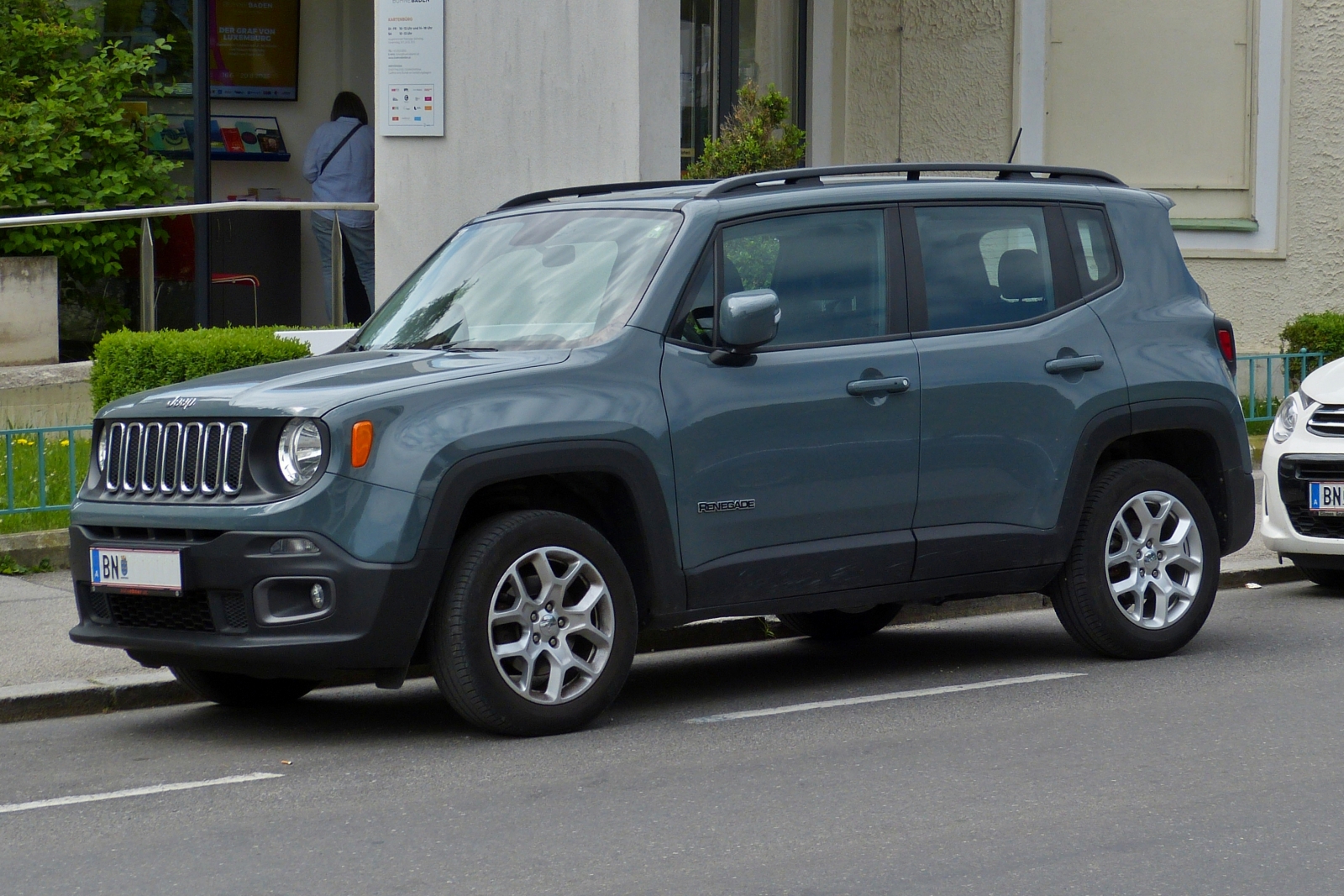 Jeep Renegade, abgestellt in einer Parklücke am Straßenrand. 06.2023
