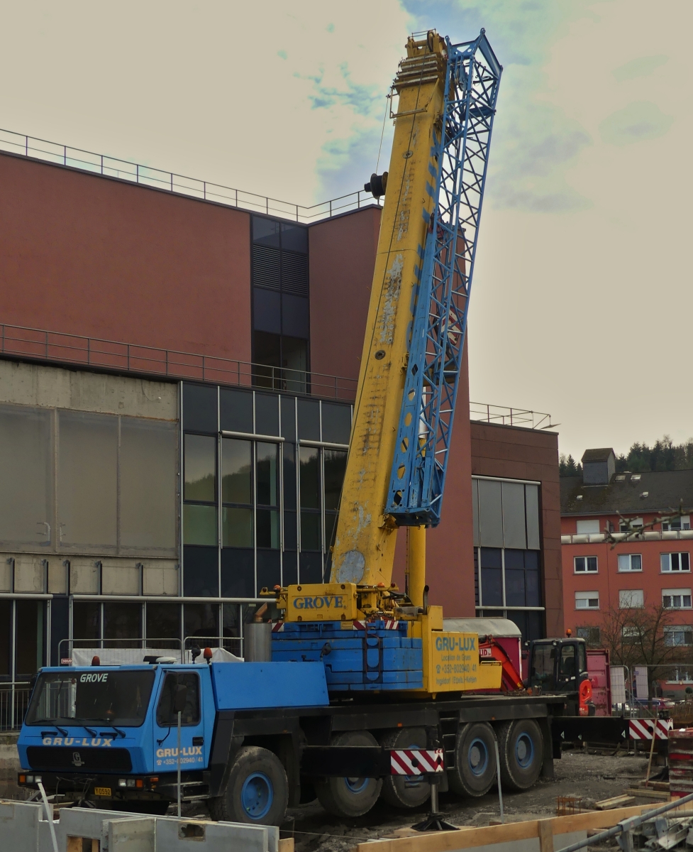 Grove Autokran steht in einer Baugrube am Krankenhaus in Ettelbrück. 02.2024
