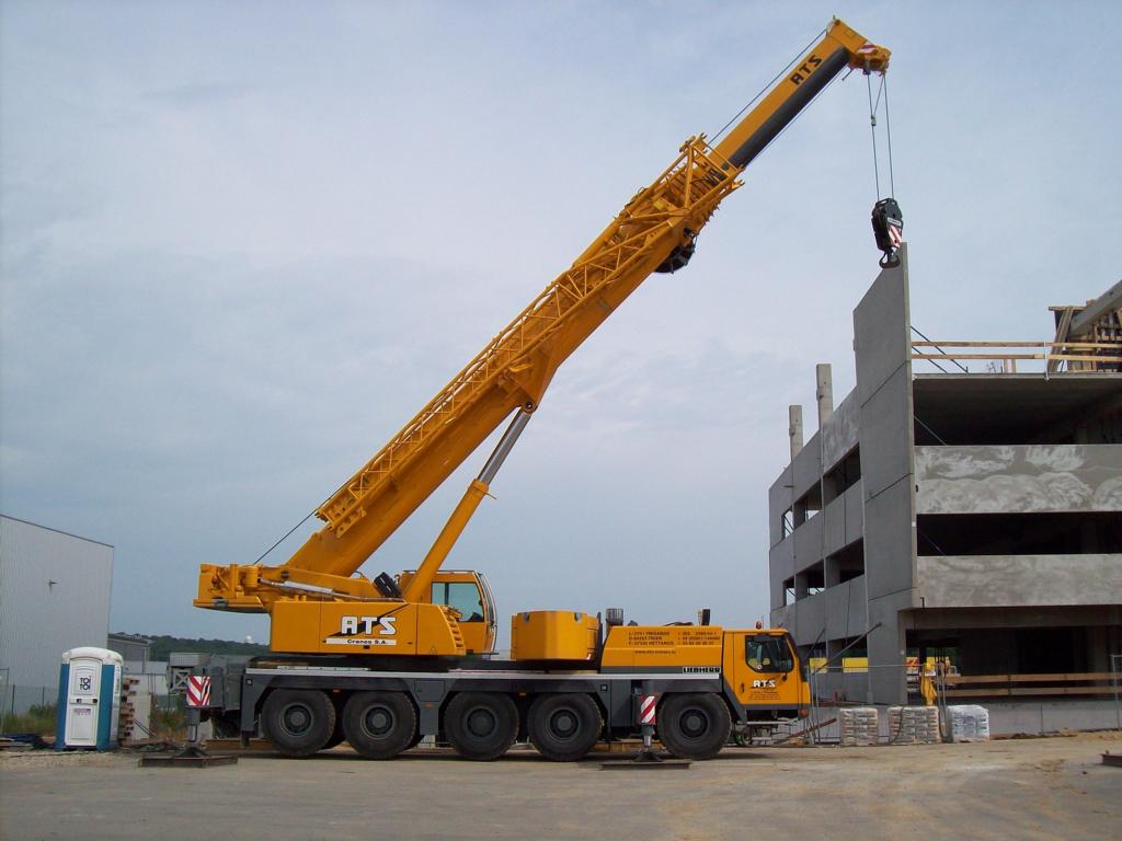 Liebherr Autokran, von ATS Cranes SA, steht an einer Baustelle und wartet auf Anlieferung neuer Teile. 10.2025