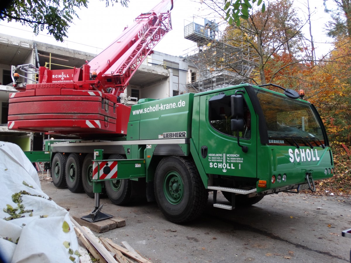 Scholl Kranservice Liebherr LTM 1100 am 29.10.15 bei Bauarbeiten im SRH Zentrum Neckargemünd