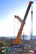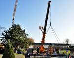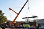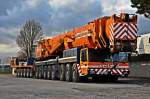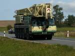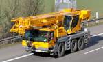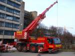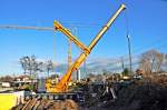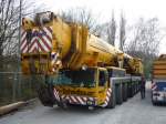 Ein nagelneuer Liebherr-Autokran vor der Verladung nach Russland im Fährhafen Mukran am 08.April 2010.