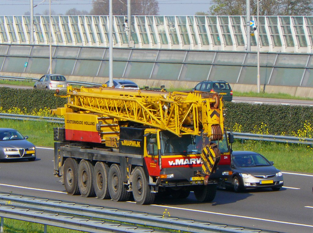 Liebherr LTM 1100/2 der Firma Van Marwijk. Autobahn A4 bei Leiden, Niederlande 18-04-2011.