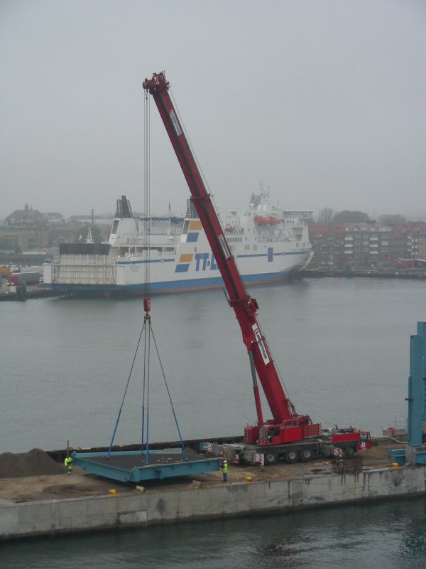 Kranarbeiten im Hafen von Teleborg an einem neuen Fähranlieger 04.11.08