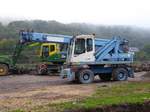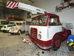 =Saviem mit einem PPM C280 Kran steht im Juli 2020 an der A 7.