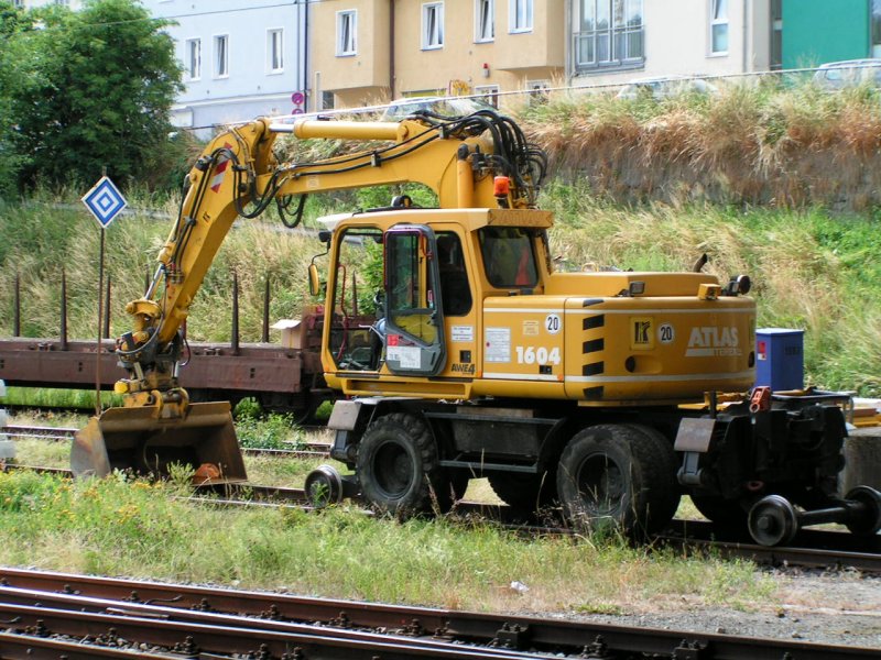 Atlas1604 mit Schienenräder im Baueinsatz Passau Hbf. 070623