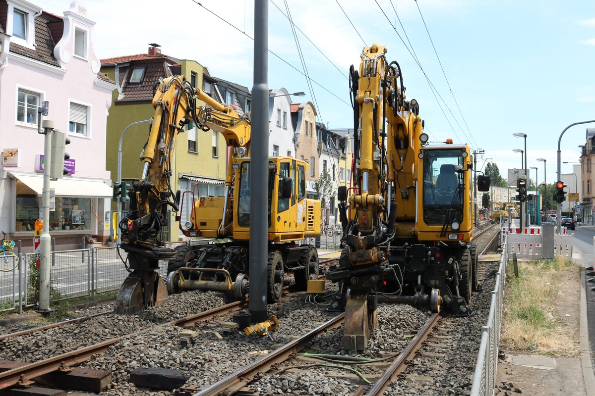 Zwei Atals Zweiwegebagger am 06.07.19 in Frankfurt am Main bei der U-Bahn Baustelle auf der A-Strecke
