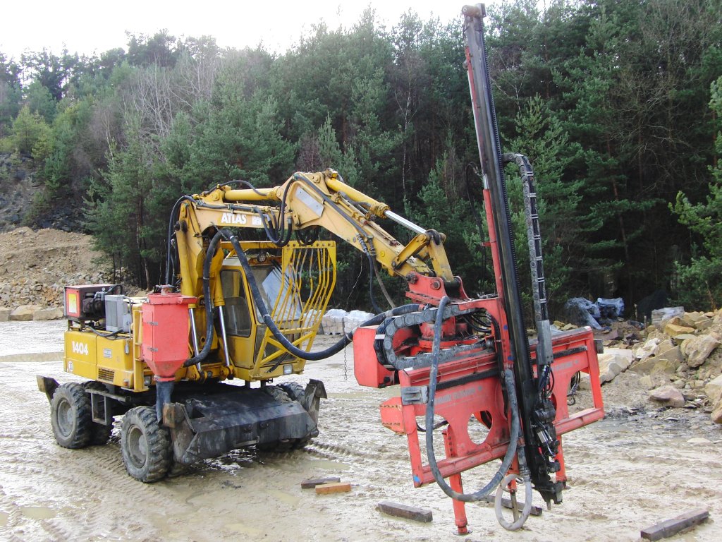 Atlas-Bagger mit Meisselvoratz im Steinbruch bei Burgpreppach (Unterfranken)