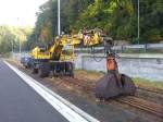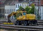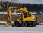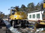 ATLAS Zweiwege Bagger am 26.03.14 in Hanau Hafen von einen Gehweg aus fotografiert