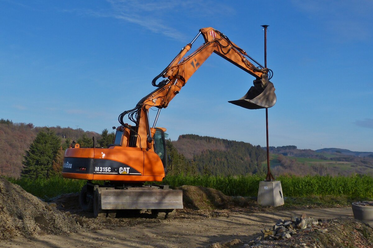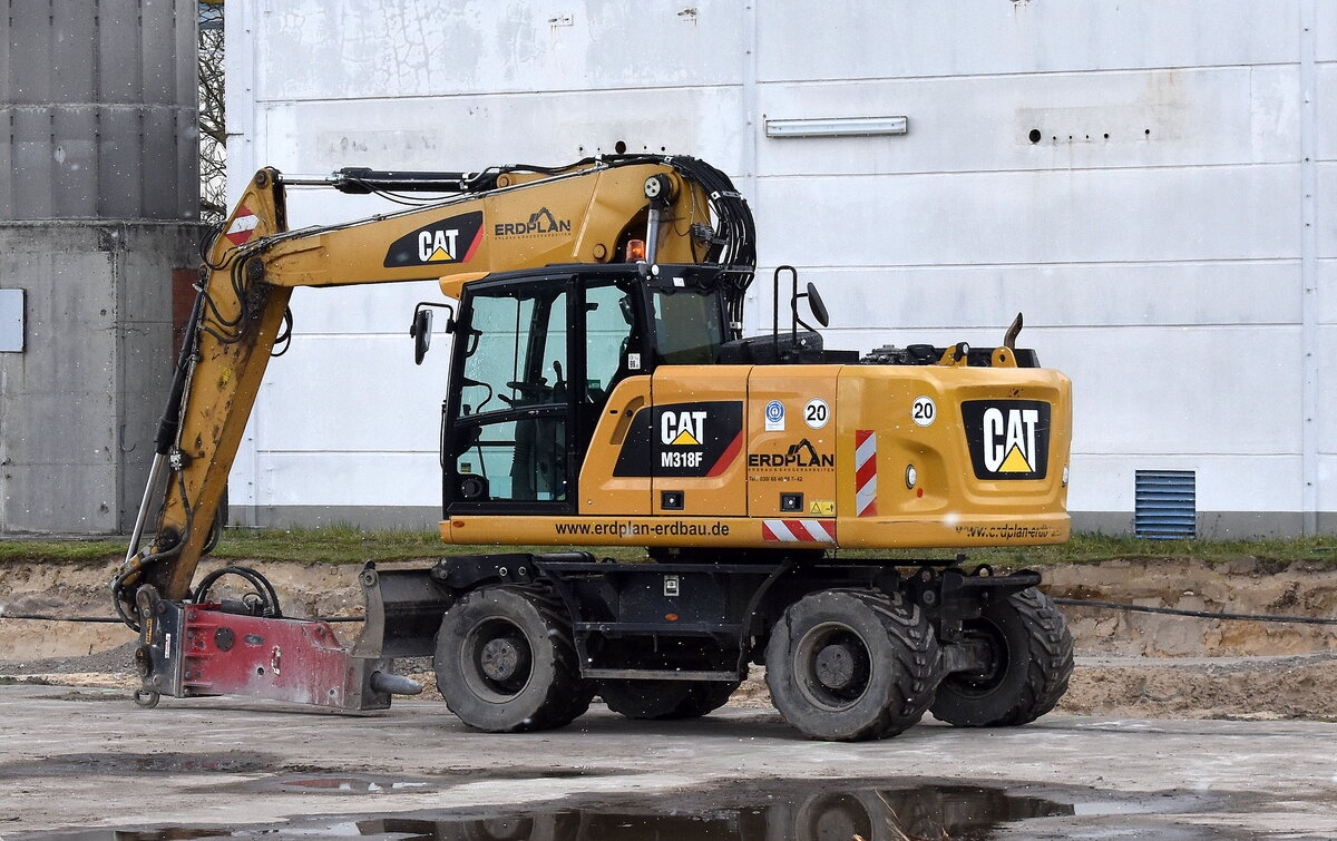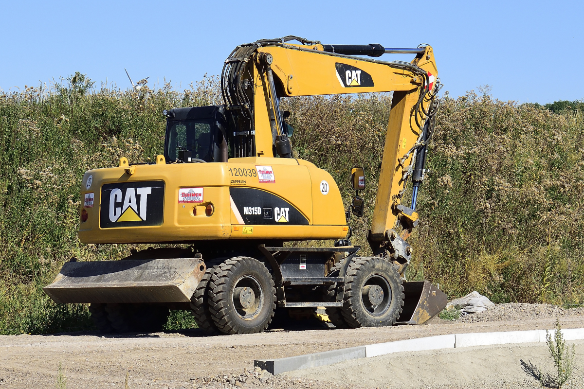 Caterpillar M 318D eingesetzt beim Bau der B50 in der Nähe von Wengerohr am 01.11.2014