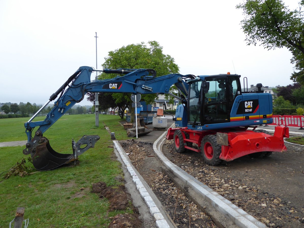 =CAT M314F von STOLZ-Bau steht auf einer Baustelle in Petersberg, 05-2025