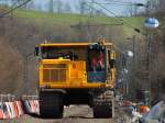 Frankreich, Languedoc-Roussillon, Hérault, zwischen Villeneuve-lès-Maguelone und Palavas-les-Flots. Komatsu HM 300 im Einsatz bei der Dünensanierung. 23.02.2014