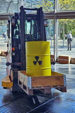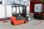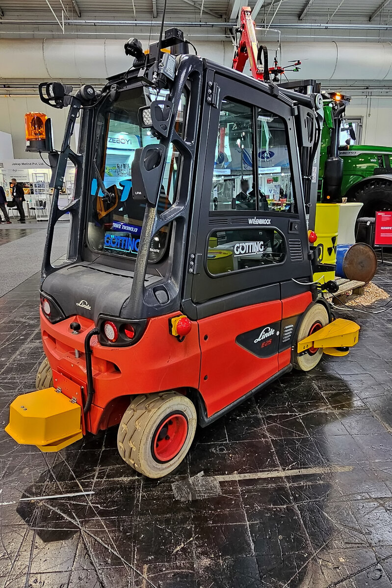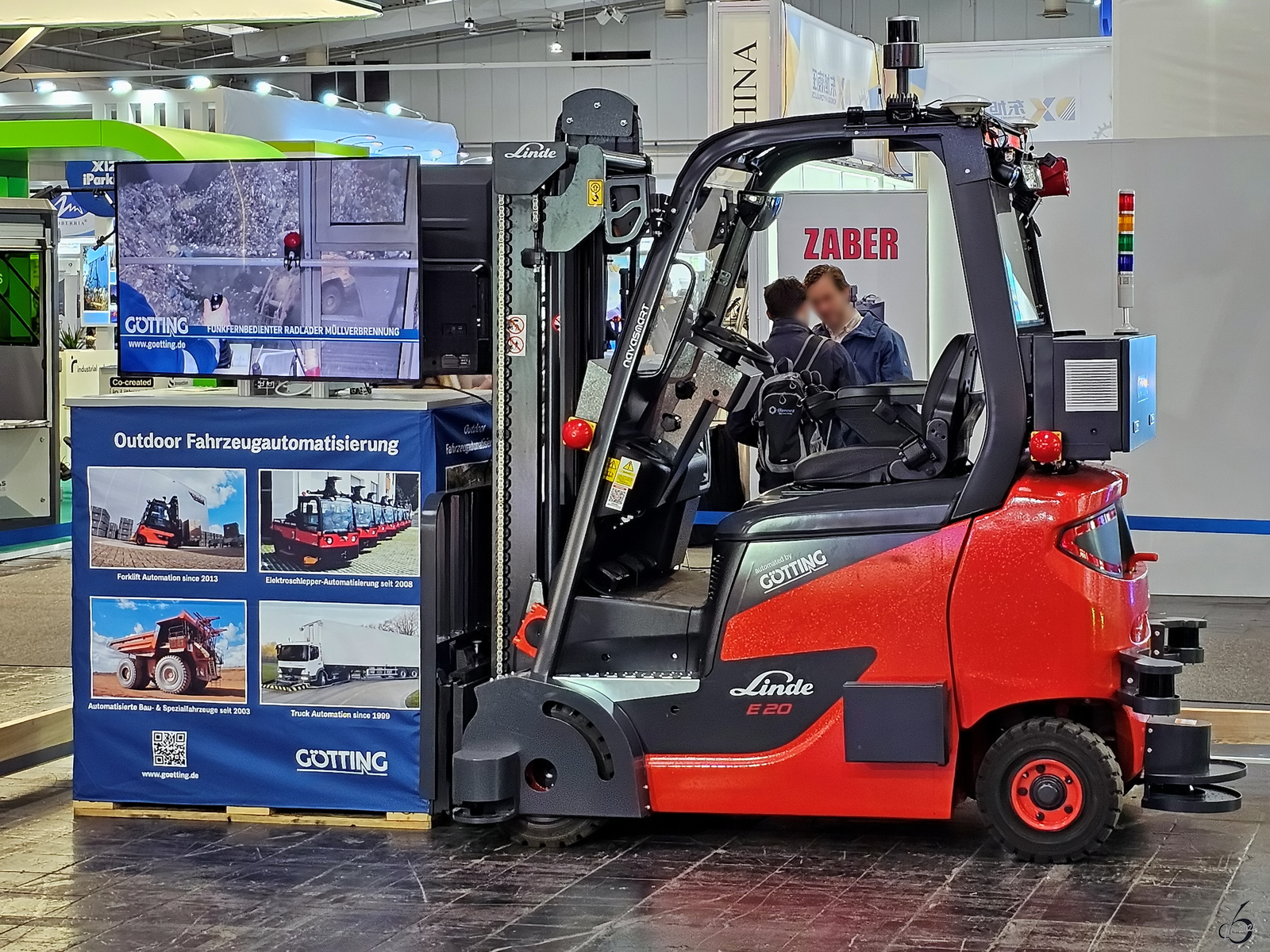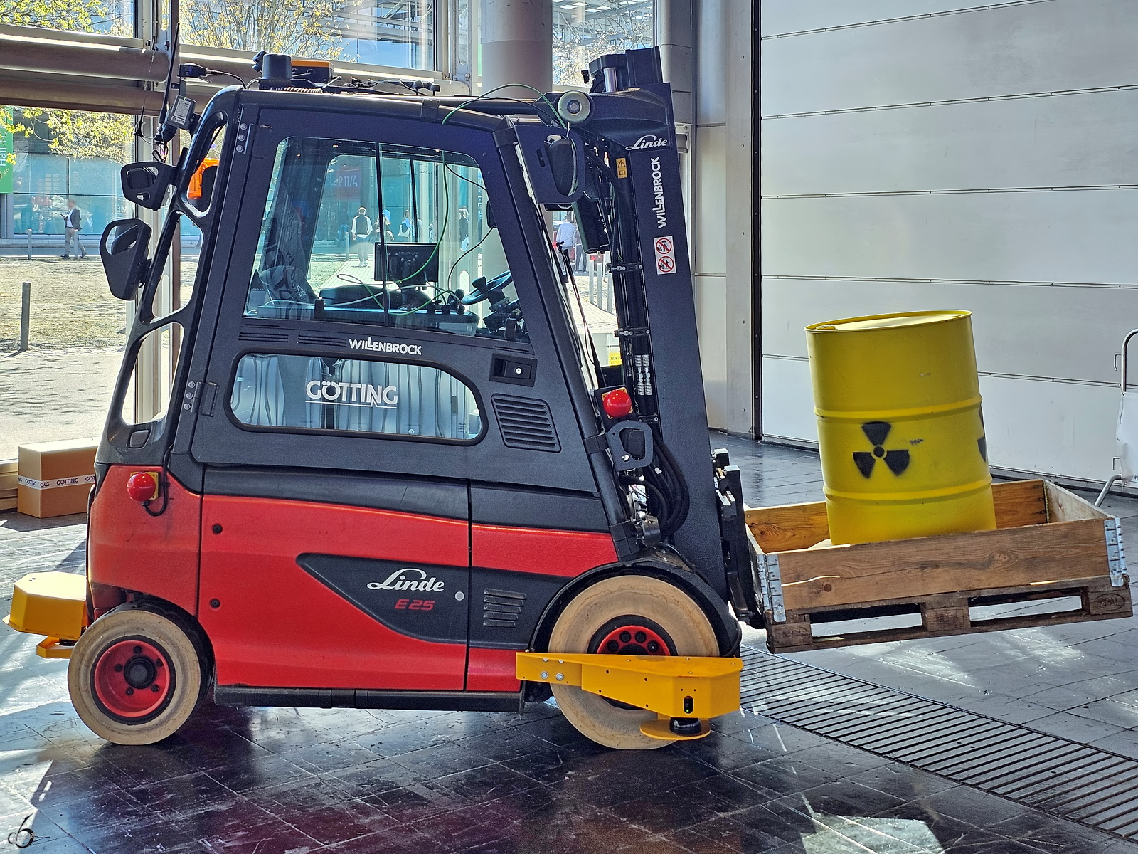 Dieser fernsteuerbare Gabelstapler E25 von Linde soll in Gefahrenbereichen zum Einsatz kommen. (Messe Hannover, April 2025)