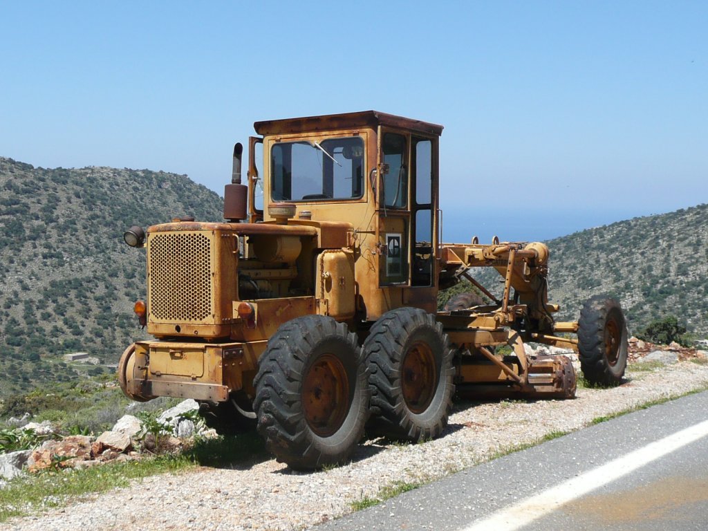 Eine hübsch gefleckte Katze (Caterpillar 140H Grader) in Kolpino, 14.10.17
