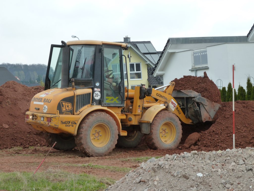 Radlader von "GÜNTHER-BAU" auf einer Baustelle in 36100 Petersberg-Marbach, April 2012