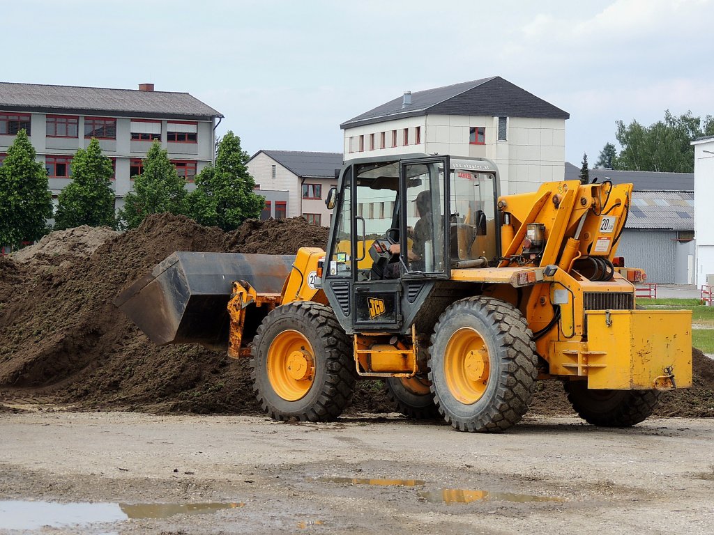 JCB-Laderbagger schichtet einen Humushaufen um; 130523
