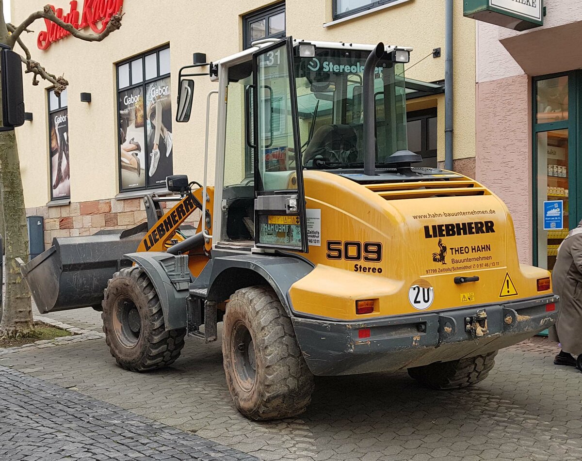 =Liebherr 509-Radlader vom Bauunternehmen THEO HAHN steht auf einer Baustelle in Hünfeld, 11-2021