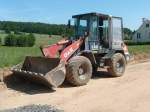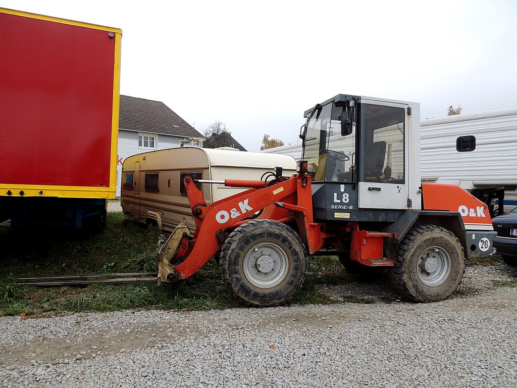 Radlader von O&K vor einer Autowerkstatt in Regen 05.11.2016