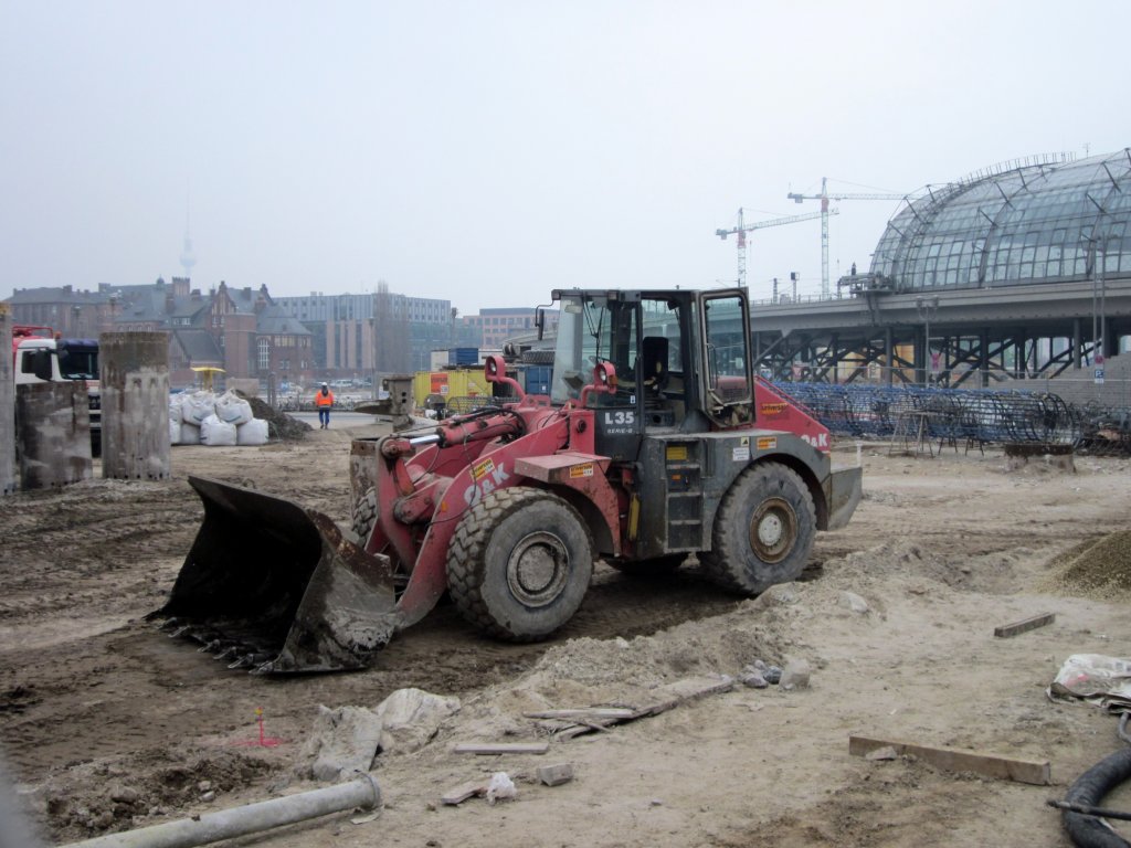 O&K L35 Radlader am 10.04.2013 auf einer Baustelle der neuen S21 am Berliner Hbf..