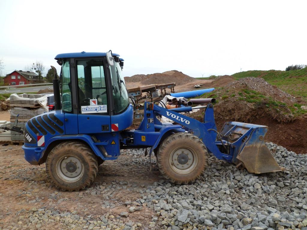 Volvo Knicklenker L 308 PRO, mit einem angehängten Bürstengerät wird in kürze den Hänger verlassen. 11.2025