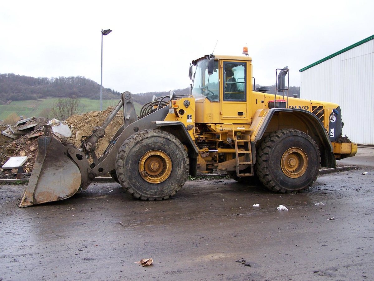 Volvo Knicklenker L 308 PRO, mit einem angehängten Bürstengerät wird in kürze den Hänger verlassen. 11.2025