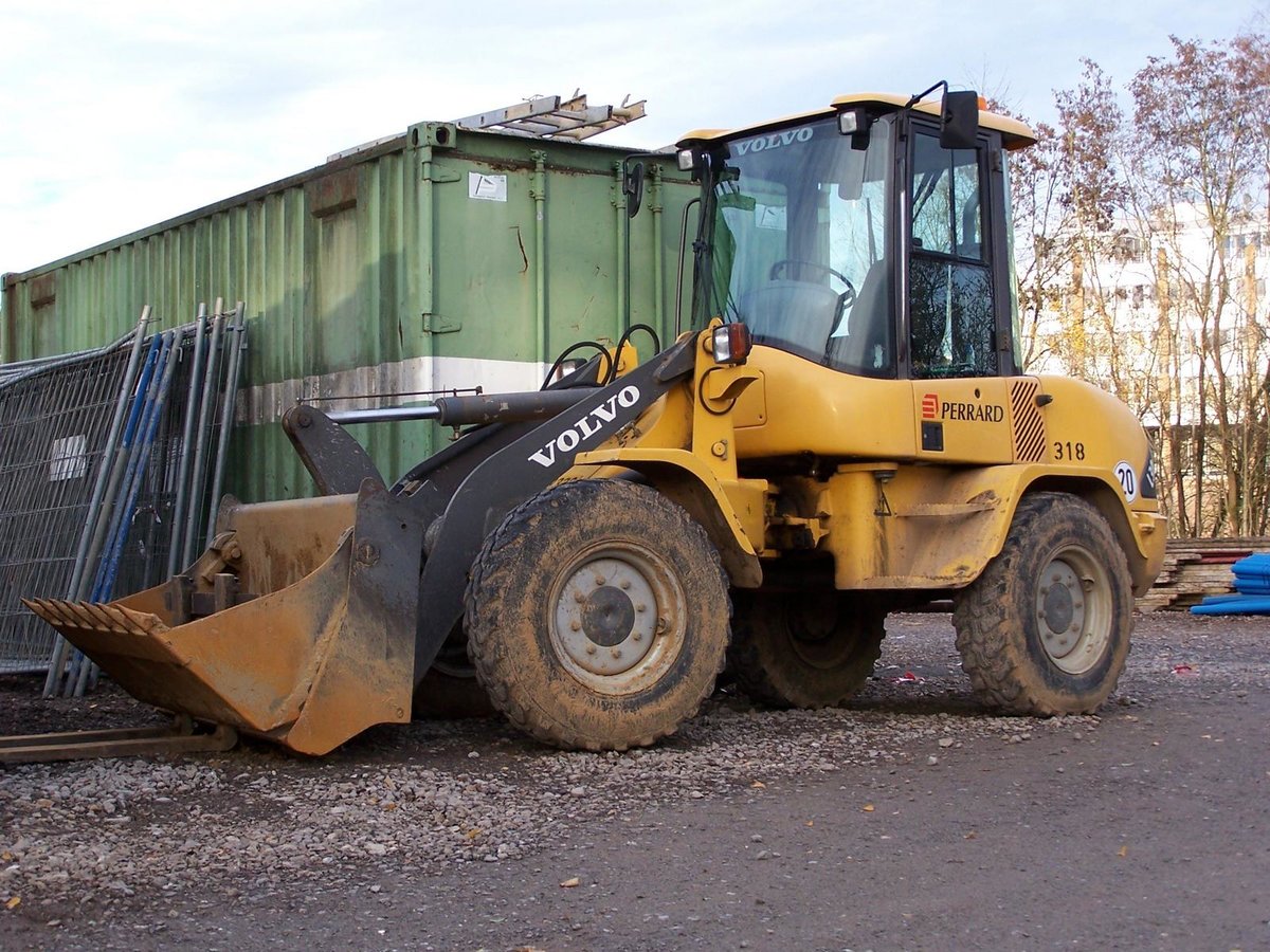 Volvo Knicklenker L 308 PRO, mit einem angehängten Bürstengerät wird in kürze den Hänger verlassen. 11.2025