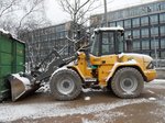 Volvo Knicklenker L 308 PRO, mit einem angehängten Bürstengerät wird in kürze den Hänger verlassen. 11.2025