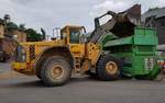 =Volvo L150E bei der Beschickung der mobilen Siebanlage Terra Select DT5 im August 2020