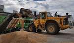 =Volvo L150E bei der Beschickung der mobilen Siebanlage Terra Select DT5 im August 2020