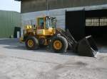 Volvo Knicklenker L 308 PRO, mit einem angehängten Bürstengerät wird in kürze den Hänger verlassen. 11.2025