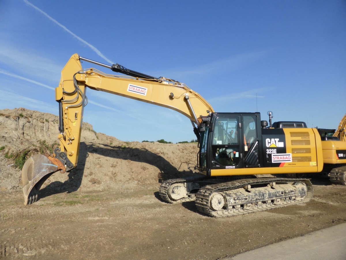 Caterpillar 323E L (Baujahr 2015, zul. Gesamtgewicht 23.000 kg, Leistung 121 kW) am 26.07.2015 in der Nähe von Longkamp
