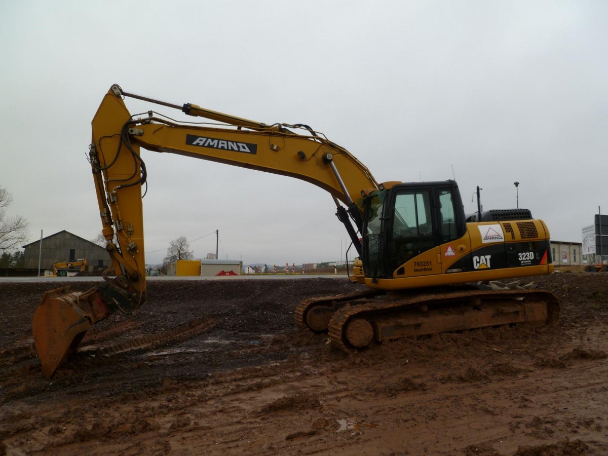 Caterpillar 323D L eingesetzt beim Bau der B50n in der Nähe von Wengerohr, 26.12.2011