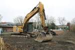 =CAT-Bagger 329 E der Firma BOCK steht auf einer Baustelle in Künzell, 11-2021