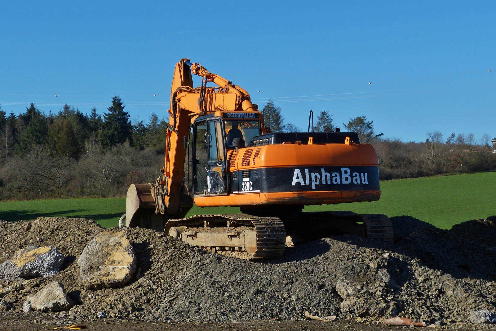 Caterpillar 320C Raupenbagger, wartet auf einen LKW zum beladen. 02.2023