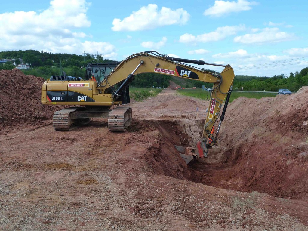 CAT 319 D bei letzten Arbeiten für die Laugenleitung der K&S in der Gemarkung von 36100 Petersberg-Marbach
