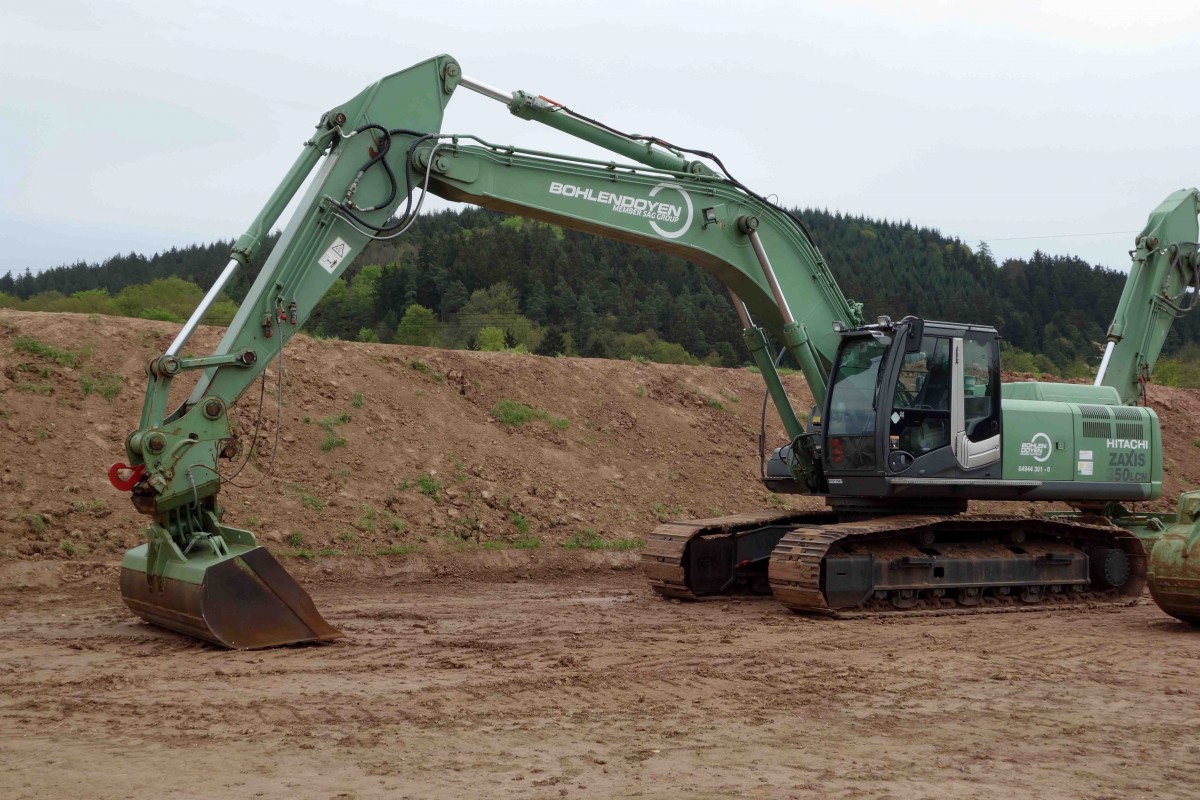 Hitachi Zaxis 350 steht auf einer Baustelle in 36100 Petersberg-Marbach, April 2015