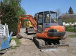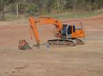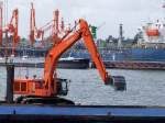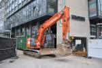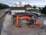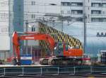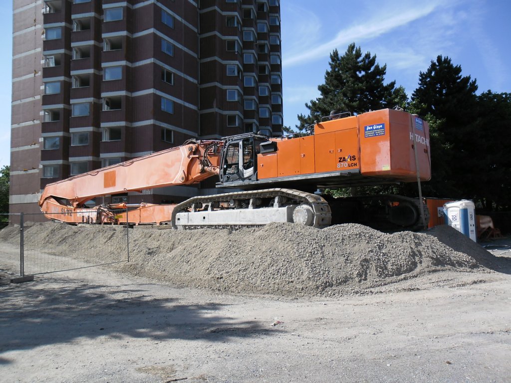 Hitachi Bagger bei Abrucharbeiten eines Hochhauses in Hannover/Misburger Straße.