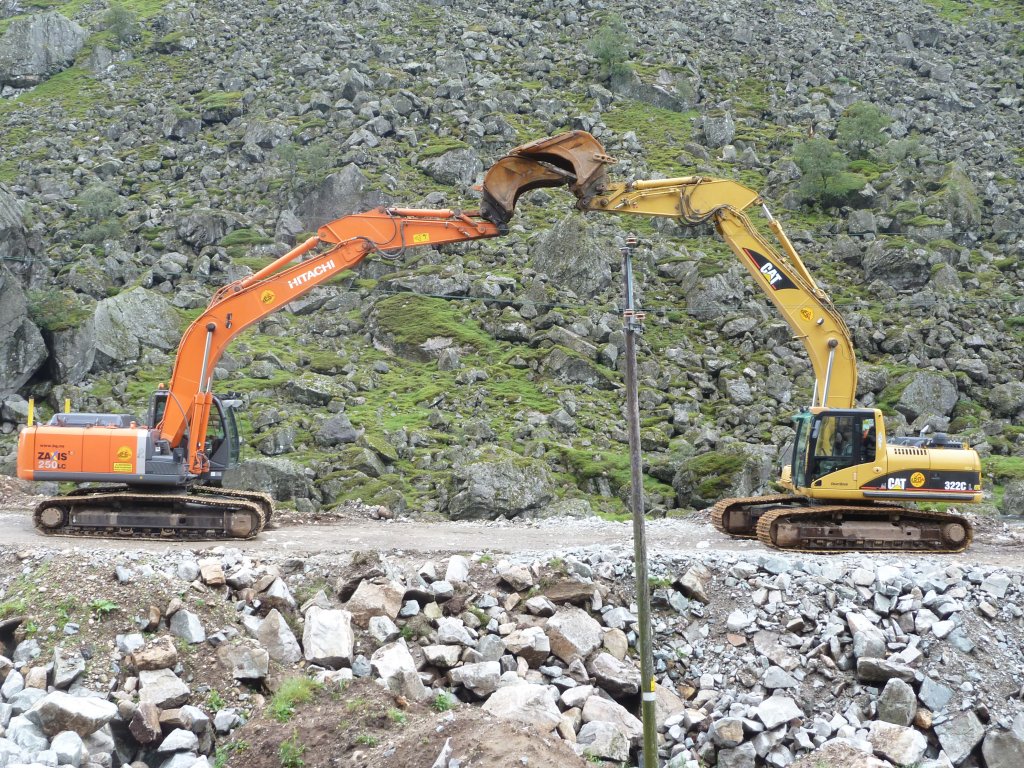 Hitachi und CAT mit zusammengestellten Schaufeln in Südnorwegen, Juli 2011