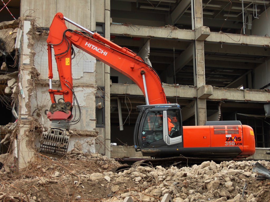 Hitachi Zaxis 350 LCN am 26.01.2012 auf einer Baustelle in Aachen an der Kopernikusstrasse.