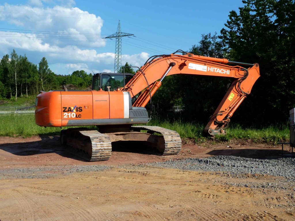 Hitachi Zaxis 210LC der Firma "SCHRANDT" an der Laugenleitung von K&S in der Gemarkung von 36100 Petersberg-Marbach, Juni 2013